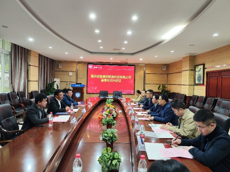2023年3月16日,碩盈峰董事長閆興一行3人前往西南大學,簽訂合作及捐贈協議。西南大學對外聯絡辦公室主任、重慶西南大學教育基金會秘書長唐軍,西南大學對外聯絡辦公室副主任、重慶西南大學教育基金會副秘書長劉濤,材料與能源學院梁武書記、徐茂文院長、徐立群副院長和部分專業老師參加捐贈儀式。